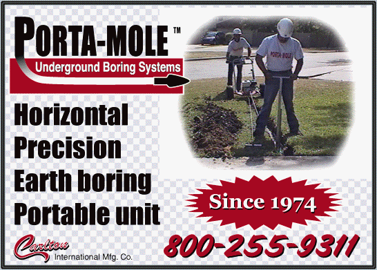 800-255-9311 trenchers, earth drills, post hole diggers, underground boring equipment, porta mole, culvert cleaning, earth boring augers, trenchless technology, bits,pullers, fiber, optic,