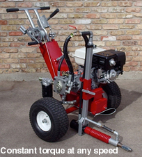 Horse Power: 5.5 Weight : 95 (43kg) Torque: 43 Width: 33" (89cm) R.P.M.: 600 Length: 59" (150cm) Gearbox: 6 to 1 Wheels: 15" x 6" (38x15cm) 9 H.P. "Classic"Capabilities: Earth boring 2" to 13"(5-33cm) in diameter in soft to hard rock soil 200'(66m) in length. Culvert cleaning up to 24" in diameter.Winch driven.